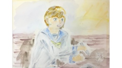宝物を大切にする少女を描きました。
