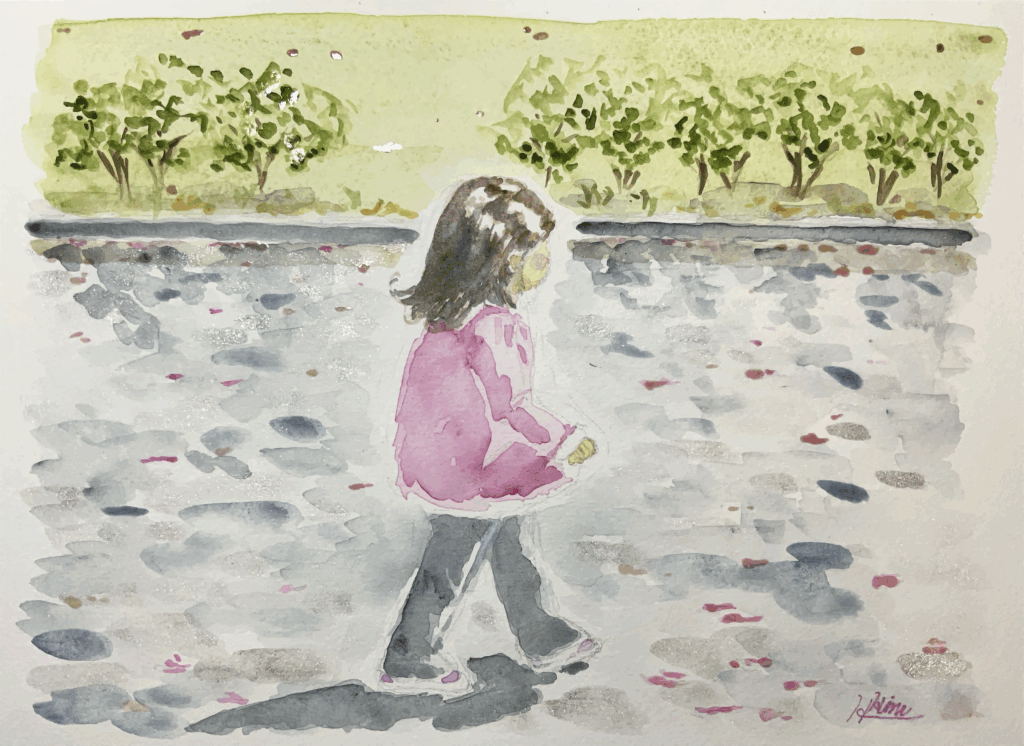 解説:背中をピンと伸ばして歩いていると、春の柔らかな陽射しが新しい道を優しく照らしてる。風に揺れる桜並木の花びらが、わたしに寄り添うかのように、ふわりふわりと舞い降りてくる。少しの不安と大きな期待でいっぱいのわたし。でも、桜の優しい香りが胸に勇気をくれるよう。「わたし、できるもん!」と心の中でそっと呟きながら、花びらの絨毯を誇らしげに踏みしめて進み、気持ちは小さな勇者そのもの。風がふわっと吹くたびに、桜の花びらが周りで踊り、まるで「がんばって」と声をかけているのかなと思ったり。